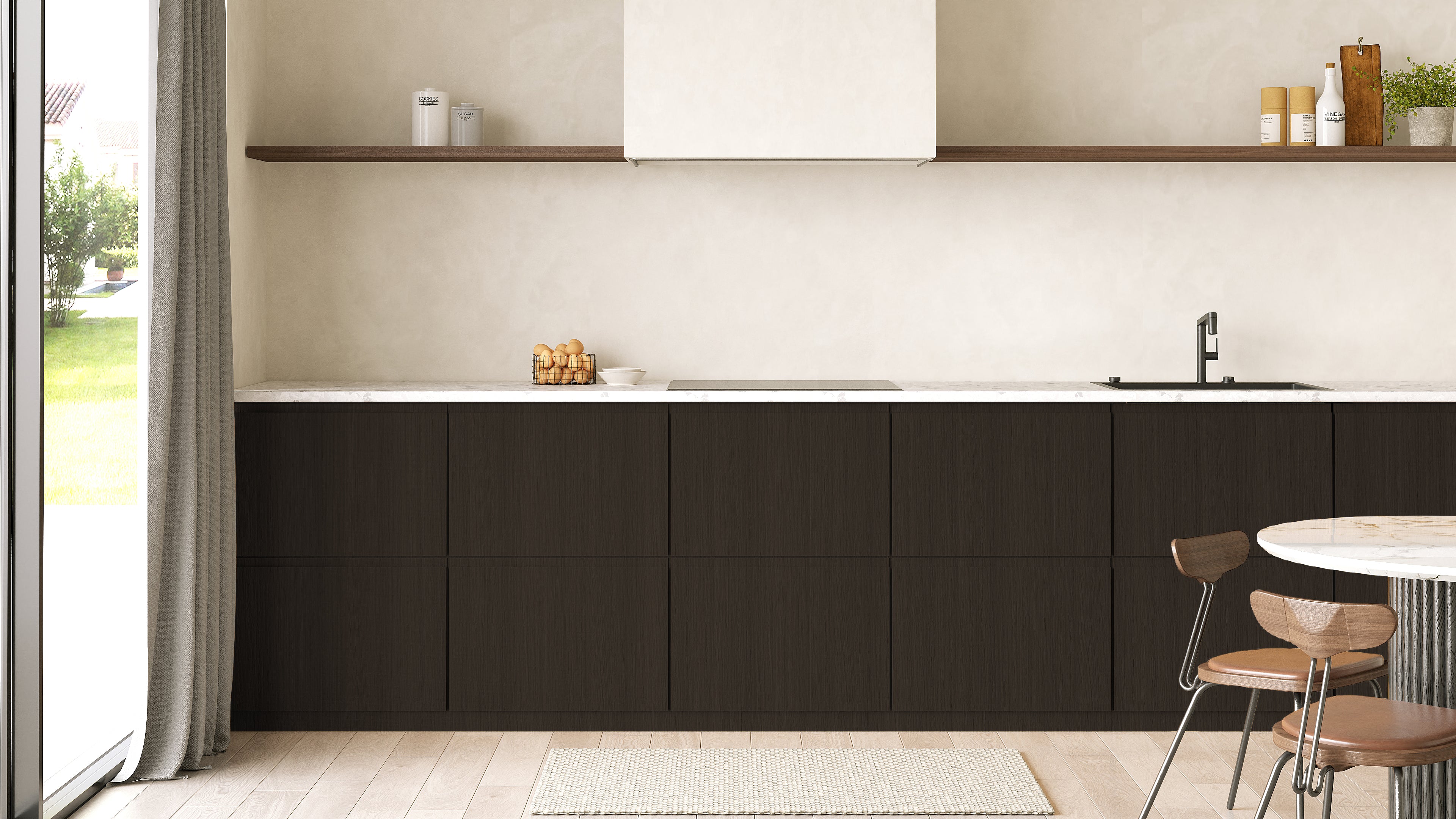 • Fronten Style: Modern (inkl. Komplettgriff). Integrierter Griff komplett oben
