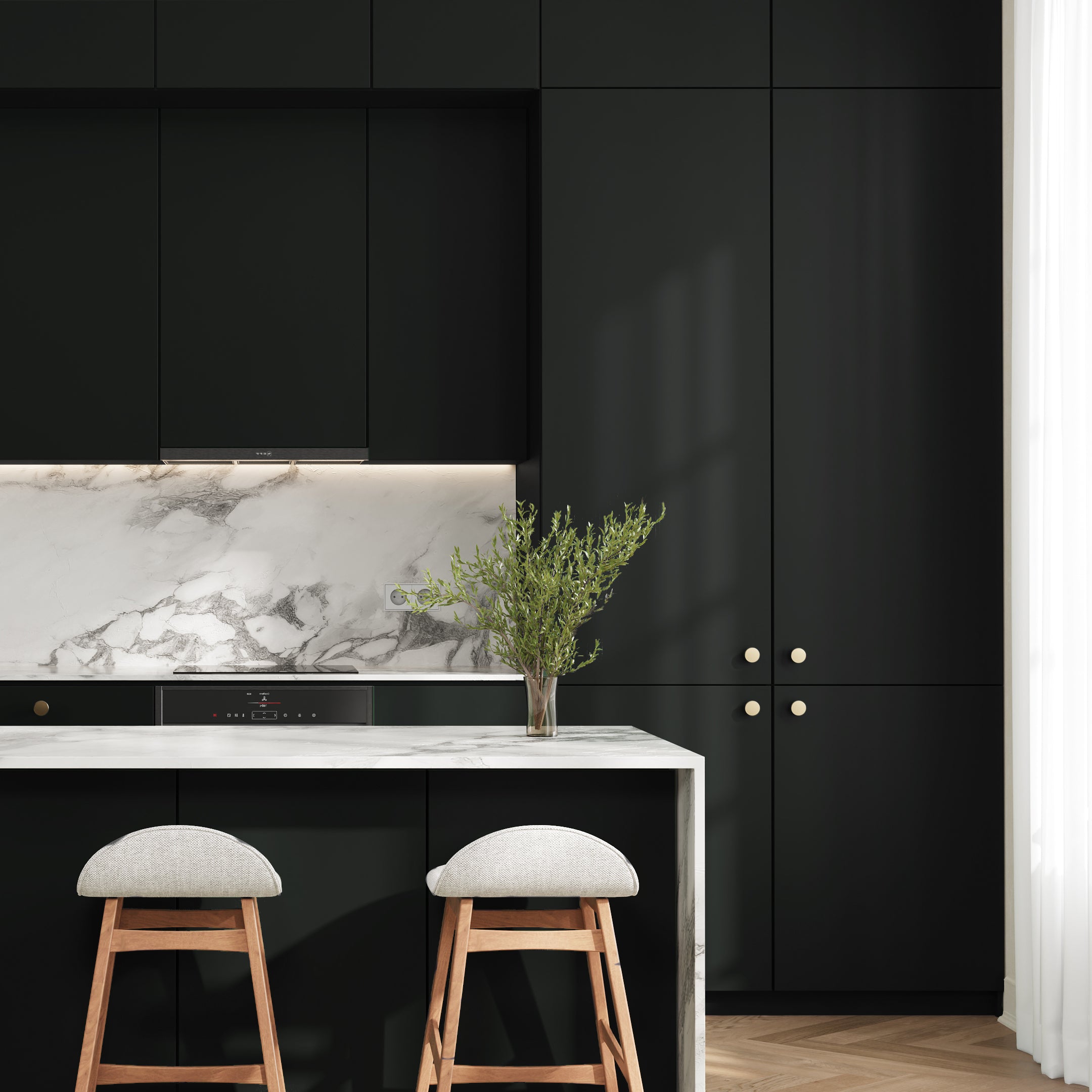 • Mattschwarze IKEA Metod Küchenfronten mit Marmorarbeitsplatte und zwei Hockern. - NovaFronten - Küchen Fronten Konfigurator - Standard - Matt