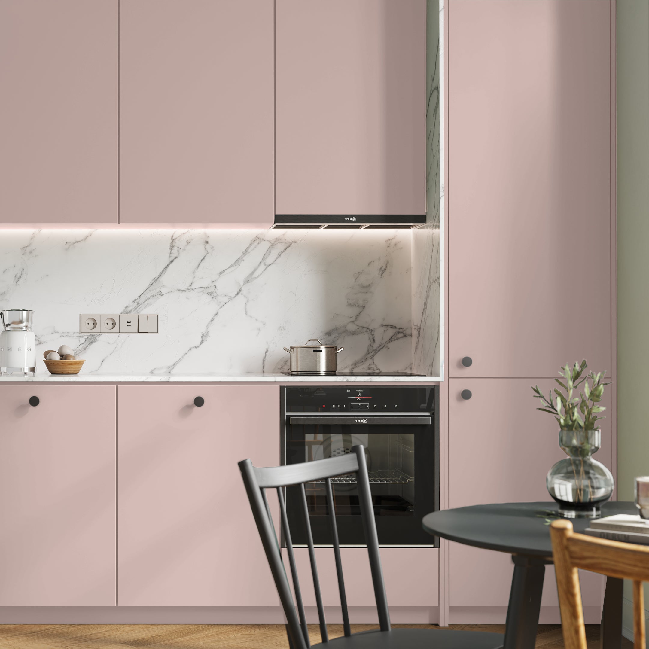 • Matt rosa IKEA Metod Küchenfronten in moderner Küche mit Marmorarbeitsplatte. - NovaFronten - Küchen Fronten Konfigurator - Standard - Matt