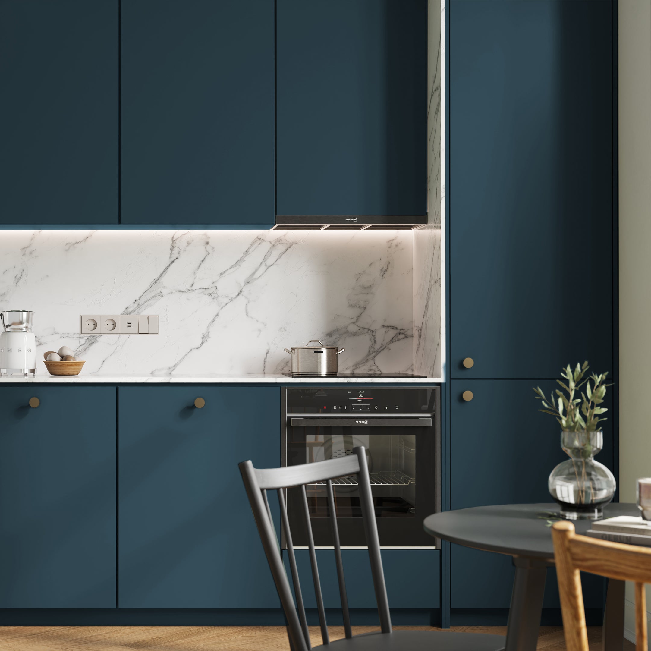 • Mattschwarze IKEA Metod Küchenfronten mit Messingknöpfen und Marmorarbeitsplatte. - NovaFronten - Küchen Fronten Konfigurator - Standard - Matt